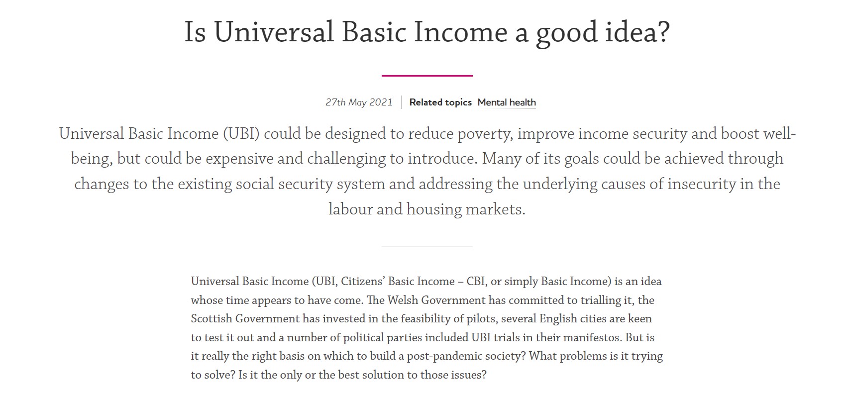 Research Reading List Official Developer Docs What We Know About Universal Basic Income: A Cross-Synthesis of Reviews Universal Basic Income in the US and Advanced Countries Universal Basic Income: An idea whose time has come? Is Universal Basic Income a good idea? Exploring Universal Basic Income : A Guide to Navigating Concepts, Evidence, and Practices